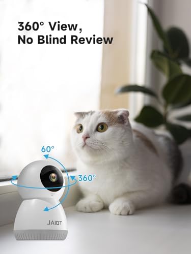 【Support 5G/2.4G WiFi & Pan/Tilt 360°Control】JAIOT Indoor camera supports both 5G and 2.4G networks, providing stronger signal and faster WiFi connection. 5G wifi indoor security camera provides you with a 360° panoramic view of every corner of your home/house. This pet camera with phone APP can pan/tilt 350° horizontally or tilt it 60° vertically to get a clear view of the whole room. An ideal for monitoring for your baby/pet/dog/cat/elder.