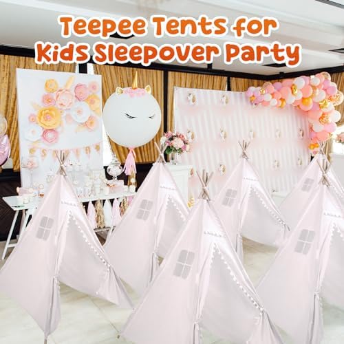 Windyun 6 Pcs Kids Teepee Play Tent, Foldable Washable Tipi Tent Kids Boho Tent, Gifts Playhouse for Indoor Outdoor Games, Kids Teepee Tent for Girls Boys Sleepovers Party Birthday Party Slumber Party