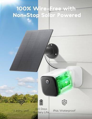 winees 2K Solar Security Camera Wireless Outdoor with 8G Free Local Storage, Continuous Powered, 2.4Ghz Wi-Fi Camera Compatible with Alexa & Google Home, Yard Camera with Motion Detection, IP66