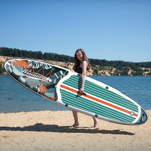 Winnovate 11’x33 x6 Inflatable Stand Up Paddle Board, Wide Paddle Board for Adults & Youth, Paddle Board Accessories with Non-Slip Deck, 3 Removable Fins, Adjustable Paddle, Leash, Hand Pump,Dry Bag