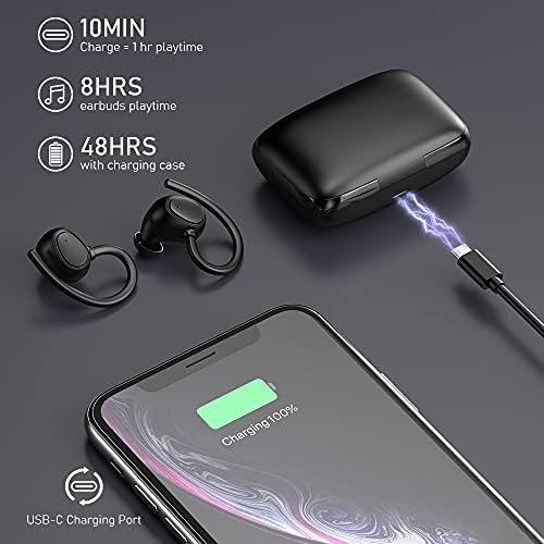 Type-C Fast Charge and Individual LED Power Display: Bluetooth headset can get 8 hours play back from a single charge. Lightweight charging case supports 5 times of recharging for earbud wireless headphones, gives up to 48 hours continuous music time. The upgraded Type-C charging port can provide faster and safer charging. LED power display on the case can help check the charging status of ear buds wireless earbud and charging case. Free to enjoy songs, movies and gaming that will never stop!
