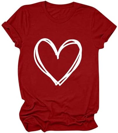 Women Cute Heart Graphic T Shirts Short Sleeve Crewneck Regular Fit Blouse Teen Girls Summer Casual Basic Tee Tops