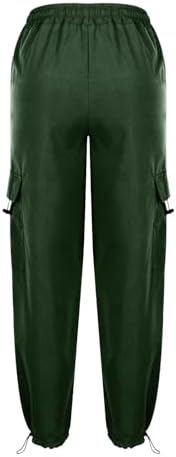 Women Elastic Waist Cargo Pants Parachute Drawstring Overalls Wide Leg Trendy Y2K Pants Teen Girls Hiking Trousers