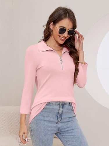 【Feature】3/4 Sleeve Shirts, V Neck Tops, Collared Shirts, Polo Shirts, Zip Up, Solid Color, Casual Tops; 3/4 sleeve design is easy to modify your arm. Collared half zip design allows for neck coverage, venting and easy on-off.