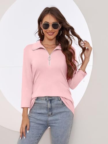 Women’s 3/4 Sleeve Tops V Neck T Shirts Zipper Collared Polo Shirts