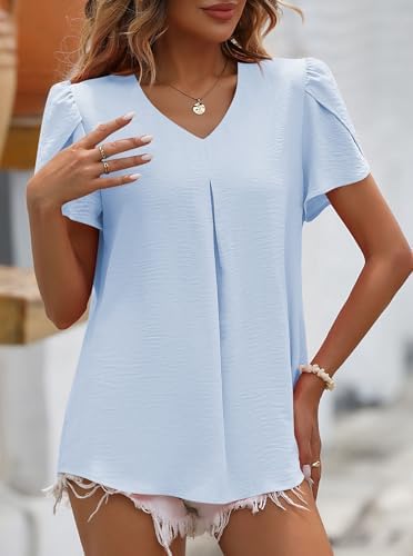 Women’s Chiffon Blouses V Neck Short Sleeve Tops Summer Casual Business Shirt