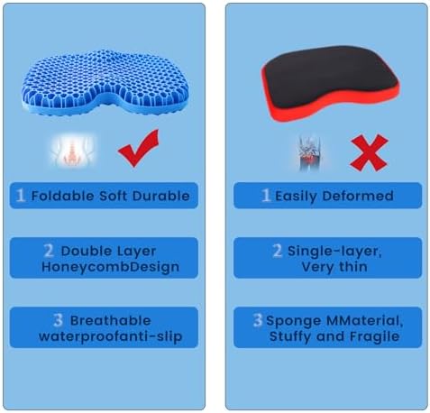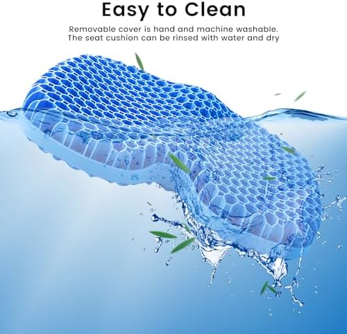 【Support The Tailbone and Relieve Pressure】Thethick gel seat cushion adopts a special U-shaped ergonomic design, which perfectly fits the curve of the buttocks and disperses the pressure on the entire buttocks and thighs. The honeycomb grid structure dynamically releases pressure points, providing maximum support and comfort while relieving pressure, so you don’t get tired after sitting for a long time. Helps relieve sciatica symptoms and improves blood circulation.
