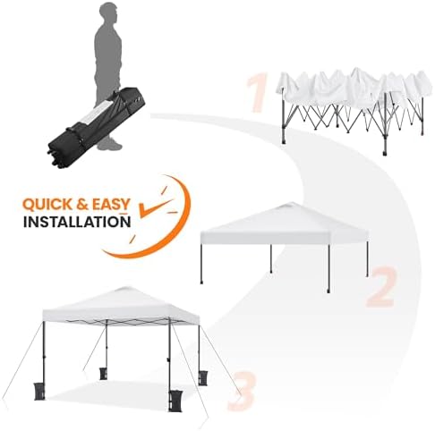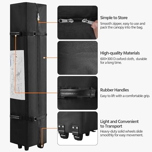 【Effortless Transport & Storage】Although this 10×10 ft pop-up canopy tent offers ample space when assembled, storing and transporting it is hassle-free. Its compact storage size of 8.7″ L × 8.7″ W × 45.7″ H effortlessly fits into your car trunk. The included roller bag ensures easy movement.