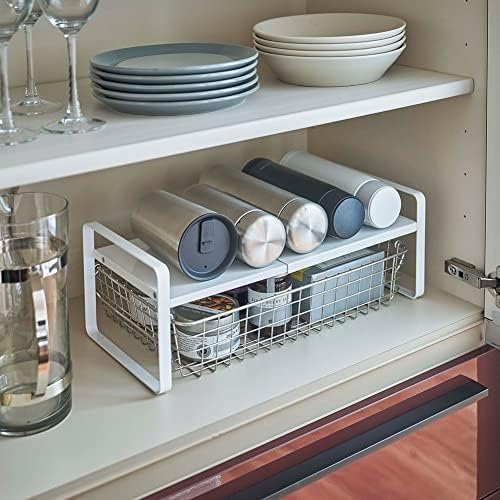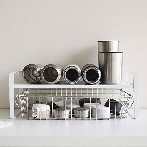YAMAZAKI Home 2 Tiered Shelf Rack-Expandable Countertop Plate Bottle Or Coffee Maker Organizer for Kitchen Or Bathroom | Steel, One Size, White
