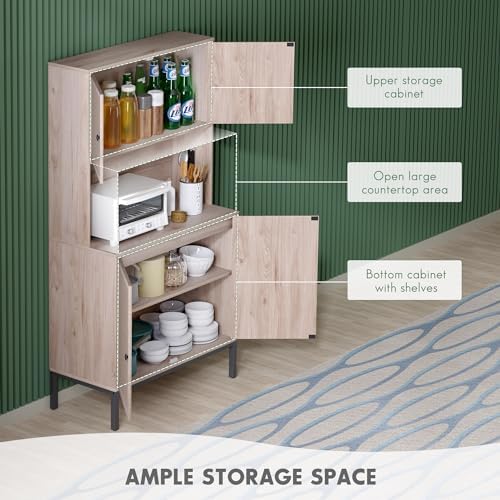 Yechen Storage Cabinet with Natural Handmade Rattan Wicker Doors, Freestanding Sideboard with Large Countertop, Kitchen Buffet,Oak