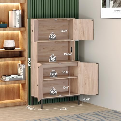 【Safety and cleaning】: Adjustable feet knobs allow large storage cabinets to be easily placed on various types of floors. Toppling preventing devices allow for greater safety for your family during use. The 7.8″ height bottom space allows the sweeper robot to enter and exit freely for cleaning. Yechen accent storage cabinet focus on user experience.