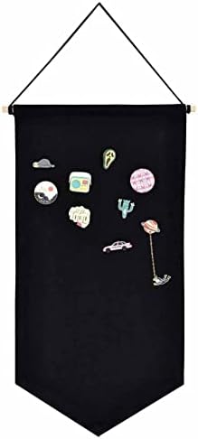 YeeMan Wall Hanging Brooch Jewelry Storage Case Canvas Display Stand Enamel Pin Display Banner Holder Earrings Necklace Glitter Pin Collection Organizer (Black)