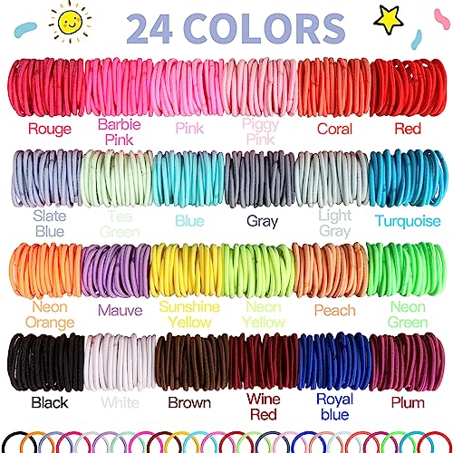 24 COLORS 312PCS SMALL HAIR TIES Contains a set of 312 elastic hair ties in a variety of 24 different bright colors. 312 count hair bands are enough braiding different hairstyles or sharing with friend, good quality and abundant quantity serve you a long time. The hair elastic is 2 mm in thickness, 2 cm in diameter, which is perfect for newborns, toddlers, baby girls, little girls, big girls,etc.