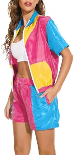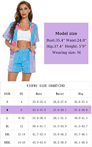 Yisfri Women’s Color Block Windbreaker 2 Piece Outfits Short Sleeve Zip Front Elastic Waist Tracksuit Set