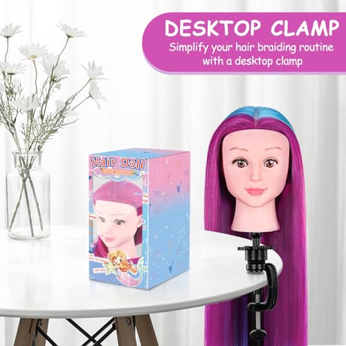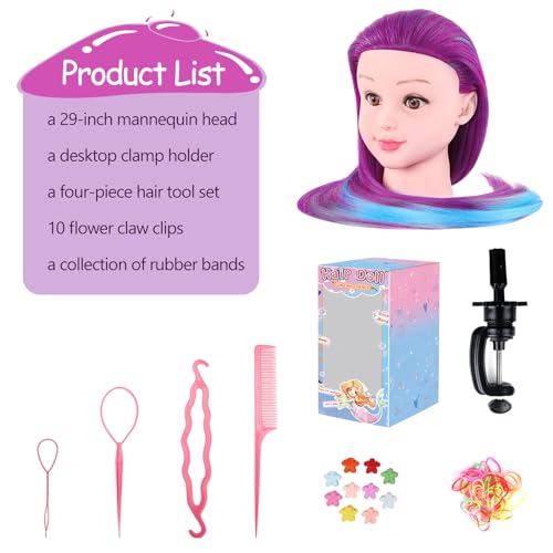 Yofuly Mannequin Head with Hair, 29″ Synthetic Hair Manikin Head, Training Doll Head for Hair Styling, Cosmetology Mannequin Head with Clamp Holder and Tool Set for Kids Girls