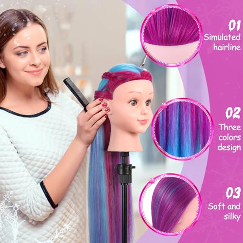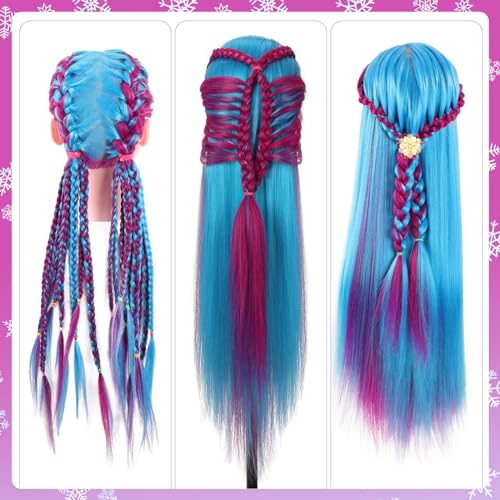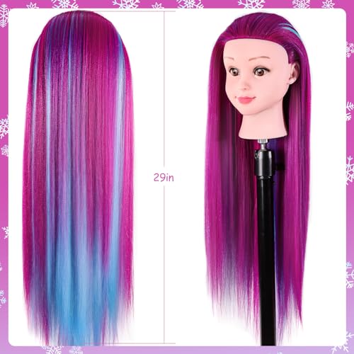 🎅【Hair Length and Color】The cosmetology doll head has a total length of 29 inches (from the forehead to the tip of the hair in the back), with individual hair strands measuring 20 inches. Beautiful blue and purple colors colors hair – Perfect for gifting!