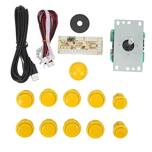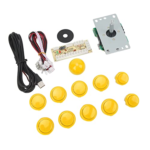 Yoidesu Buttons and Joysticks DIY Kit, 2 Player Gamepad DIY Replacement Parts, USB Controller Computer Game Stick Joysticks with Control Chip (Yellow) [video game]
