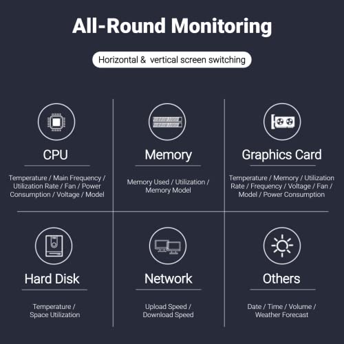 MULTIFUNCTION: IPS USB mini screen built in multiple themes to choose from, USB interface direct connection, comprehensive monitoring of computer health, shutdown automatic rest screen.
