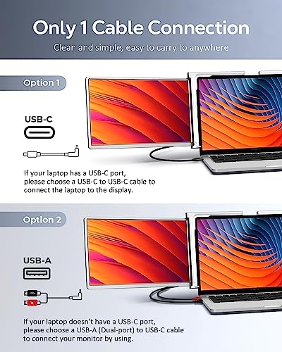【Single Cable Convenience】: The Yutoo S500 triple portable monitor for laptop simplifies your setup by enabling a 2-in-1 display and power supply through a single cable connection. Say goodbye to cable clutter as we offer a choice of USB or Type-C interface cables, ensuring compatibility and eliminating concerns about laptop socket functionality. Unlike other Portable Laptop Monitors, you won’t have to deal with multiple cables for each connection, making your experience hassle-free.