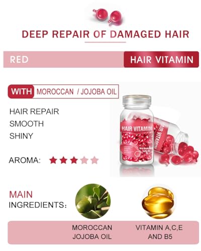 Zcvtbye Hair Repair Serum Capsules Mix Color 2-Bottle 60PCS – Enriched with Moroccan Argan, Macadamia & Avocado Oils – Vitamins A C E Pro B5 – Hair Conditioner Treatment for Damaged Hair