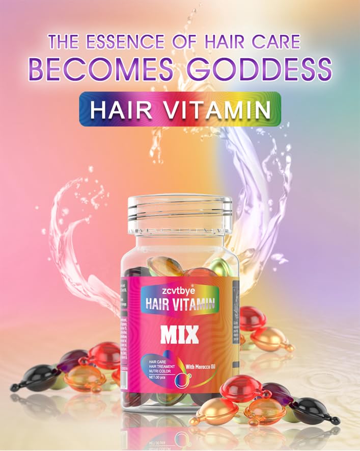 𝐌𝐢𝐱 𝐂𝐨𝐥𝐨𝐫𝐬 𝐇𝐚𝐢𝐫 𝐕𝐢𝐭𝐚𝐦𝐢𝐧 𝐂𝐚𝐩𝐬𝐮𝐥𝐞𝐬: Infused with Moroccan oil, jojoba oil, and essential vitamins, our capsules deeply repair damaged hair, leaving it smooth, silky, and healthier-looking. Ideal for dry hair types, these capsules transform daily hair care into a luxurious experience.