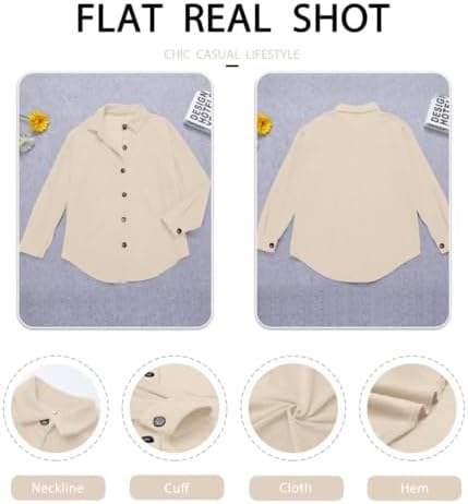 Womens Corduroy Button Down Shirts Boyfriend Long Sleeve Shacket Jacket Tops
