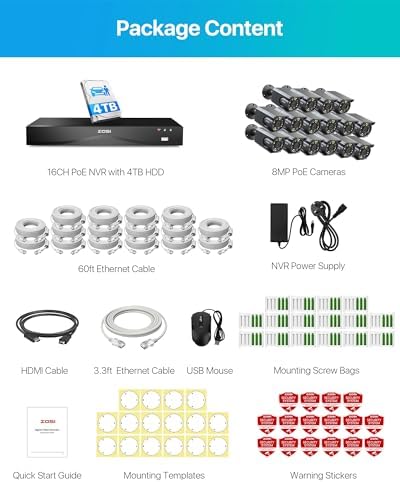 (1).[ Elevated 4K UHD PoE Camera System ]__Experience unparalleled quality with our exclusive 4K 8MP 16CH H.265+ PoE NVR System. Enjoy seamless compatibility with 16 ZOSI 4K 8MP PoE IP Cameras for comprehensive home security or business surveillance. Witness vivid full-color images even in low-light conditions, thanks to starlight technology and 100ft IR night vision.