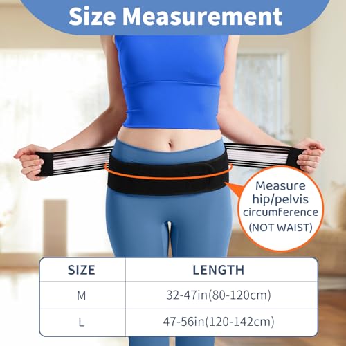 [Adjustable Size] – SI belt for women provide 2 sizes,Size M length 43in(Before Elasticity Extend):fits hip circumference of 22 – 63in;Size L length 55in(Before Elasticity Extend):fits hip circumference of 28 – 74in.sciatica belt hip braces for hip pain women designed elastic strap to adjust the tightness and compression as your preference.pull 2 sides elastic tension straps to get a tighter or looser fit.