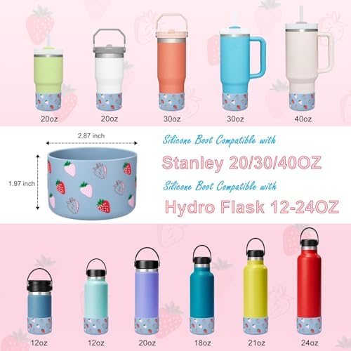 A Must-Have Accessories for Stanley Cup: Boots snugly fits compatible cups and tumblers. Silicone bottom protector, lightweight, better protect the water cup, reduce noise, prevent scratches and avoid metal clank. Fits great inside car cup holder after placing our silicone boots onto your Stanley cups,Stanley Iceflow Flip bottles, and other compatible size water bottles. Convenient to carry your beloved cups and water bottles anywhere. Great for outdoor and sports, office, home and travel.