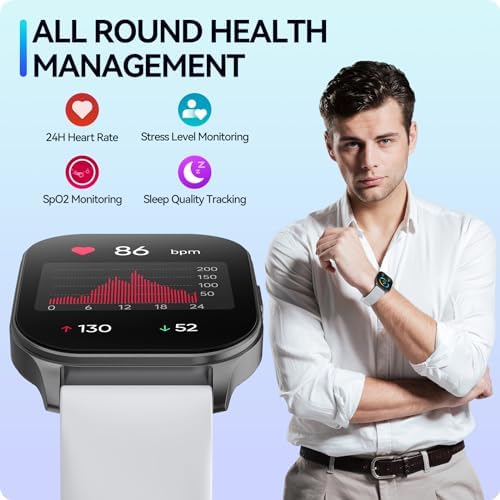 【All-Round Health Tracking】 Get accurate health indicators thanks to high-performance optical sensors and a meticulously designed curved watch body that gets closer to your skin. the smart watch for Android and iPhone will timely and precisely work as a fitness tracker to record your daily walking steps, distances, and calories, monitor your 24/7 heart rate, blood oxygen, stress, sleep quality and generate a detailed data report and graph.