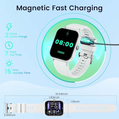 Multi-Functions smartwatch: men Women smart watches have many practical tools, such as weather forecasts, stopwatch, calculator, timer, music player, adjustable brightness, find phone/ watch, breathing training, smart alarm clock, camera control, women health, sedentary reminder, ect. The blood oxygen watch adopts IP67 waterproof, which has a good waterproof effect for daily life, such as: washing hands, anti-sweat, anti-rain, etc. 100% battery can be used for 5-10 days and standby for 30 days.