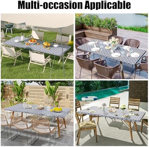 [Secure Fit with Windproof Design] Smiry’s elastic-edged tablecloth ensures a snug fit, eliminating movement and the need for clips. Say goodbye to disruptions caused by wind or tugging, and savor your meals undisturbed.