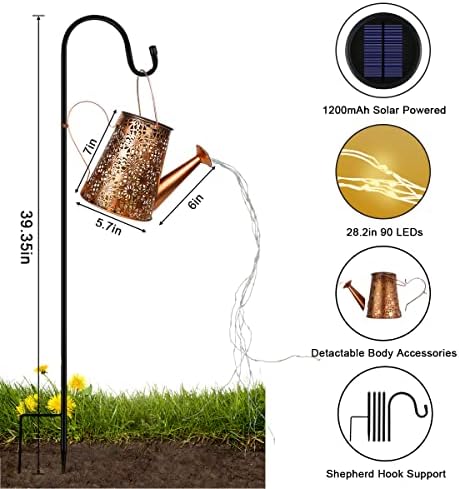 Perfect Decoration: The LED copper string lights that come with the solar watering can light can be bent and shaped as you like, it looks like water is being poured from the watering can, it also the perfect garden decoration lights.The string lights are in twinkle mode.
