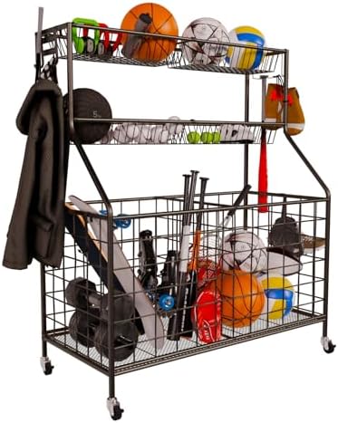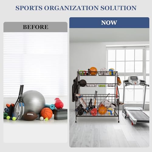Multi-Use Scenarios – Sport equipment rack is suitable for your garage, basement, playground, gym, school and any workplace, it can easily make your garage neat and organized, lockable wheels can meet your needs to move and fix it anytime.