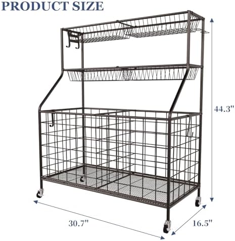 Large Capacity Sports Organizer – Sports equipment storage comes with 4 heavy duty smooth rolling wheels, two of which can be fixed for easy mobility, suitable for both indoor and outdoor use. Dimensions:Overall product:37 “L x 16.7 “W x 45 “H, each basket:16.9 “L x 9.5 “W, each storage box:18 “L x 16.5 “W x 18.7 “H.