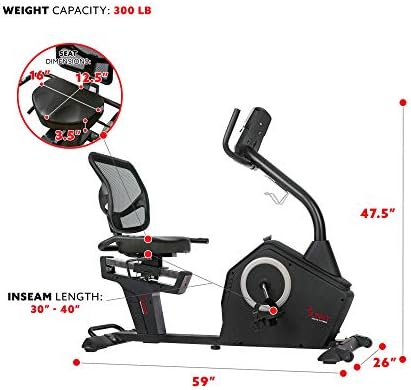 Sunny Health & Fitness Magnetic Resistance Recumbent Bike with Optional Exclusive SunnyFit™ App and Smart Bluetooth Connectivity
