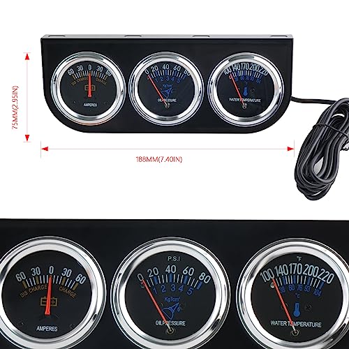 【Type】 Mechanical.3 in 1 Set: AMP Meter + Oil Pressure Gauge + Water Temperature Gauge Material: Metal.