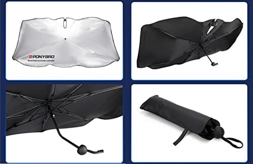 (Upgraded Ultra-Durable) PONYBRO Foldable Windshield Sun Shade Umbrella for Cars,SUVs, MiniTrucks and Vans,Reflective Polyester Blocks Heat and Sun, Full-Coverage Sunshade 57″ x 31.5″ inches.