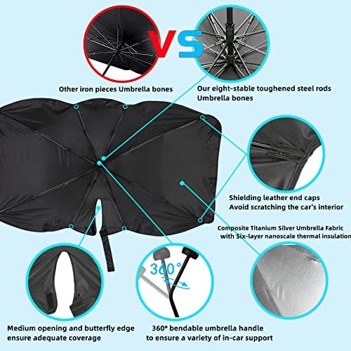 【Easy to Use and Carry】:Foldable car front windshield umbrella design, Make our products as easy to use as normal sun umbrellas, easy to store and carry!