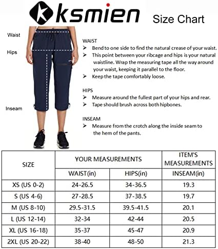 Ksmien Women’s Lightweight Quick Dry Hiking Cargo Capris Pants with Zippered Pockets