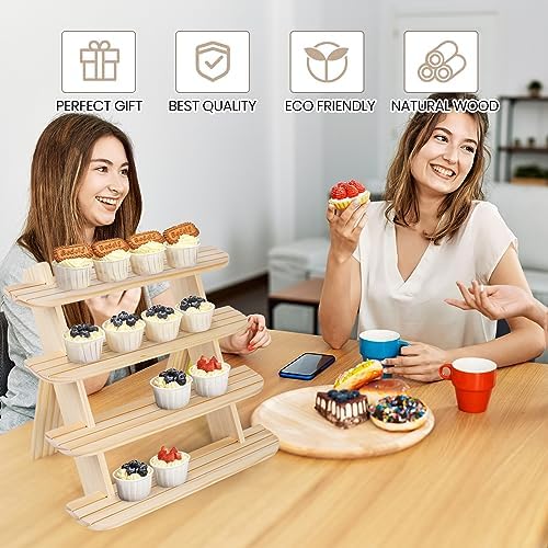 【Safe & Premium Quality】:Our tiered display shelves are constructed using the finest natural wood without toxic painting or any chemical odor. The shelves feature a natural wood tone and grain; it is a green product and is completely safe for displaying food items or decor.